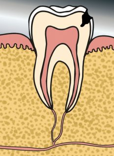 Der gesunde Zahn besteht aus einer äußeren Schmelzschicht. Der innere Bereich des Zahnes gliedert sich in die Bereiche Dentin und Pulpa auf. Das Dentin liegt unter dem Schmelz. Im Innersten befindet sich das Gefäß-Nervenbündel, die Pulpa. Der gesunde Zahn sollte von einem gesunden Parodont umgeben sein.